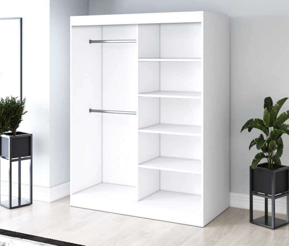 2 układy wnętrza do wyboru – Wnętrze można dostosować do swoich potrzeb, do przechowywania krótszej odzieży letniej lub dłuższych ubrań zimowych. W zestawie znajduje się 5 półek oraz 2 drążki, umożliwiające obie konfiguracje bez konieczności dokupowania elementów.