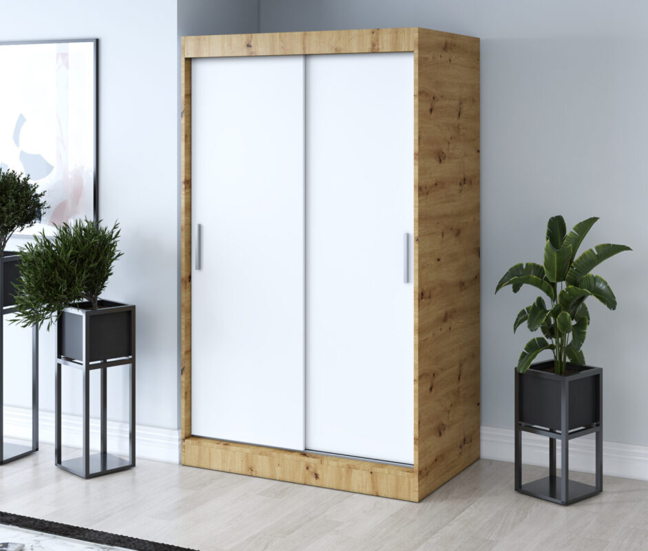 Szafa przesuwna 120×200 Gold, Dąb Artisan / Biały mat