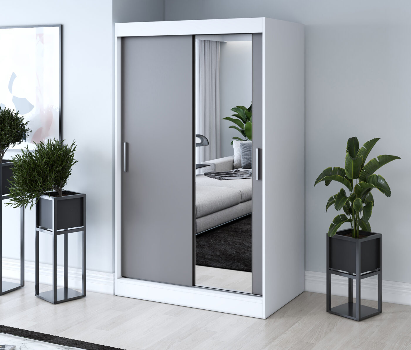 Szafa przesuwna 120×200 Hugo, Biały mat / Antracyt mat