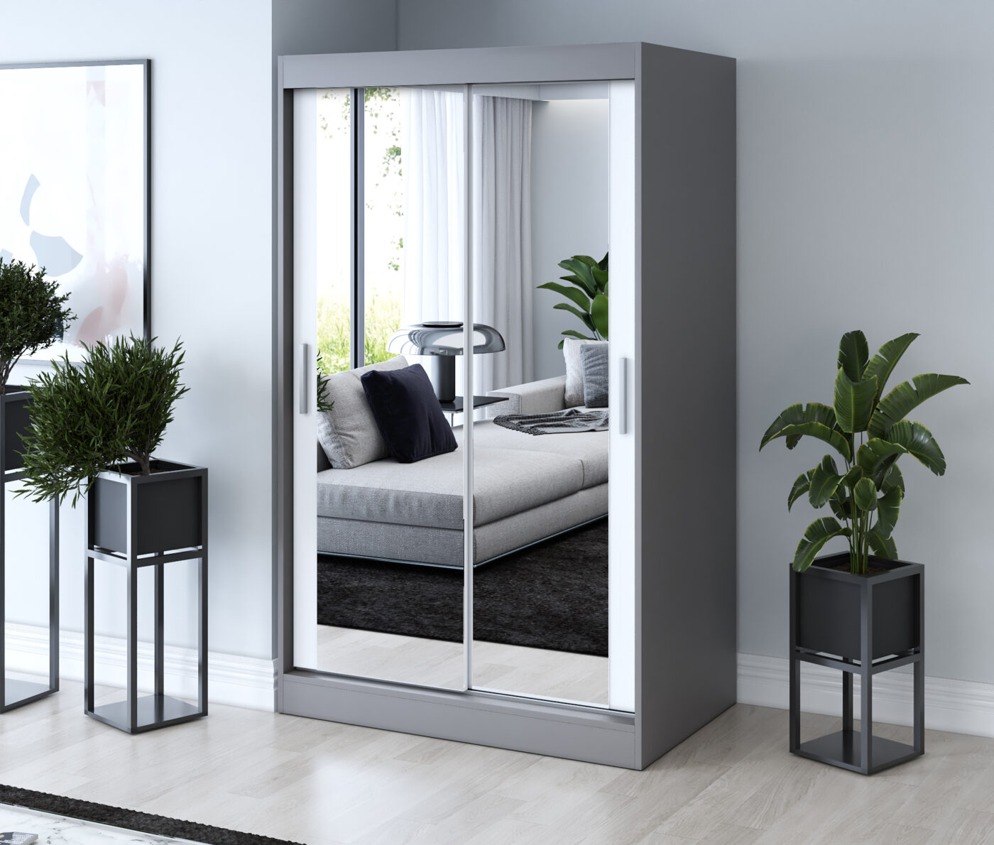 Szafa przesuwna 120×200 Karl, Antracyt mat / Biały mat