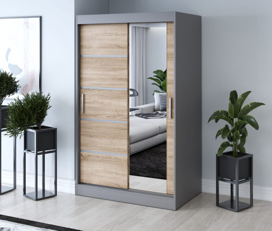 Szafa przesuwna 120×200 Pepe, Antracyt mat / Dąb Sonoma