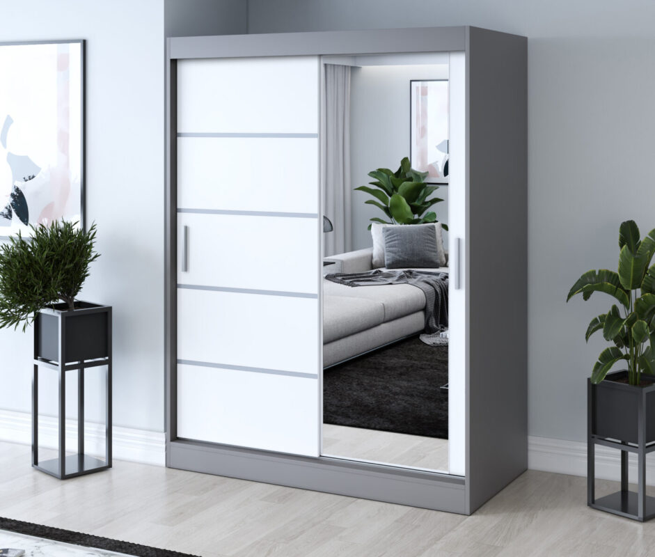 Strona główna > Szafy przesuwne 150x200 > Szafa przesuwna 150×200 Pepe, Antracyt mat / Biały mat