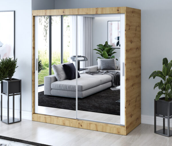 Szafa przesuwna 180×200 Karl, Dąb Artisan / Biały mat