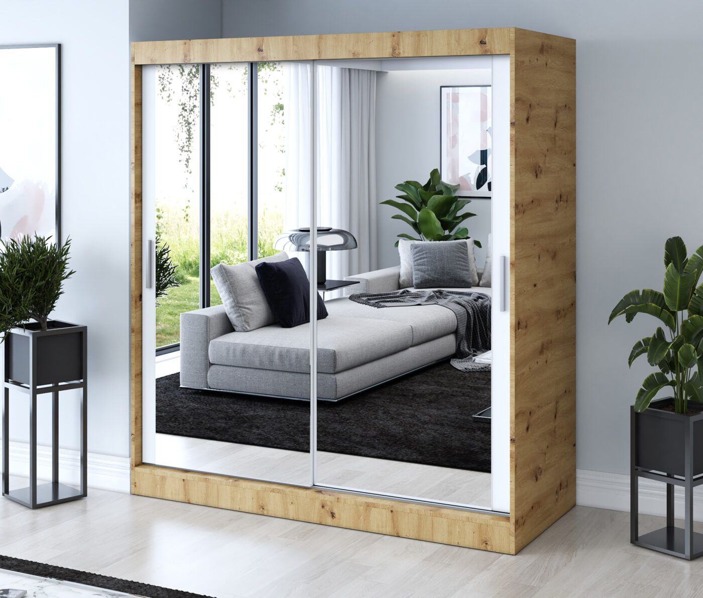Strona główna > Szafy przesuwne 180x200 > Szafa przesuwna 180×200 Karl, Dąb Artisan / Biały mat