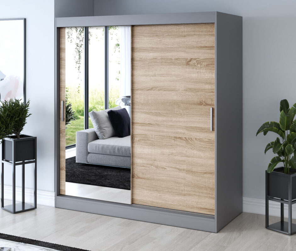 Wypełnij formularz, aby zadać pytanie o produkt: Szafa przesuwna 180×200 Sofia, Antracyt mat / Dąb Sonoma