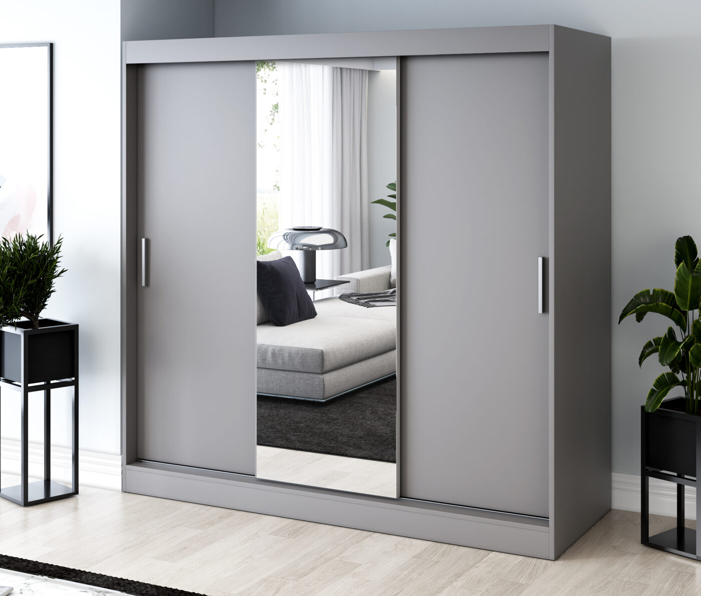 Nasza szafa przesuwna 200x200 cm to doskonały wybór dla osób, które cenią funkcjonalność, porządek i nowoczesny design. Jej trzydrzwiowa konstrukcja łączy elegancję z wygodą użytkowania. Przesuwne fronty otwierają dostęp do obszernego wnętrza, nie zajmując dodatkowego miejsca w pomieszczeniu.