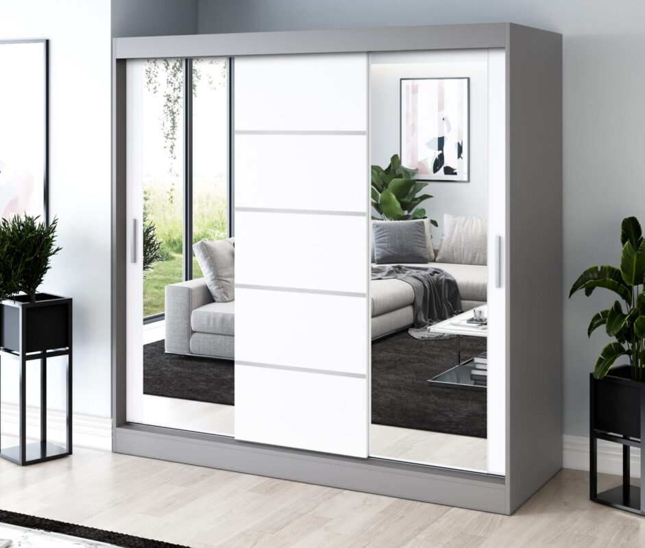 Nasza szafa przesuwna 200x200 cm to doskonały wybór dla osób, które cenią funkcjonalność, porządek i nowoczesny design. Jej trzydrzwiowa konstrukcja łączy elegancję z wygodą użytkowania. Przesuwne fronty otwierają dostęp do obszernego wnętrza, nie zajmując dodatkowego miejsca w pomieszczeniu.