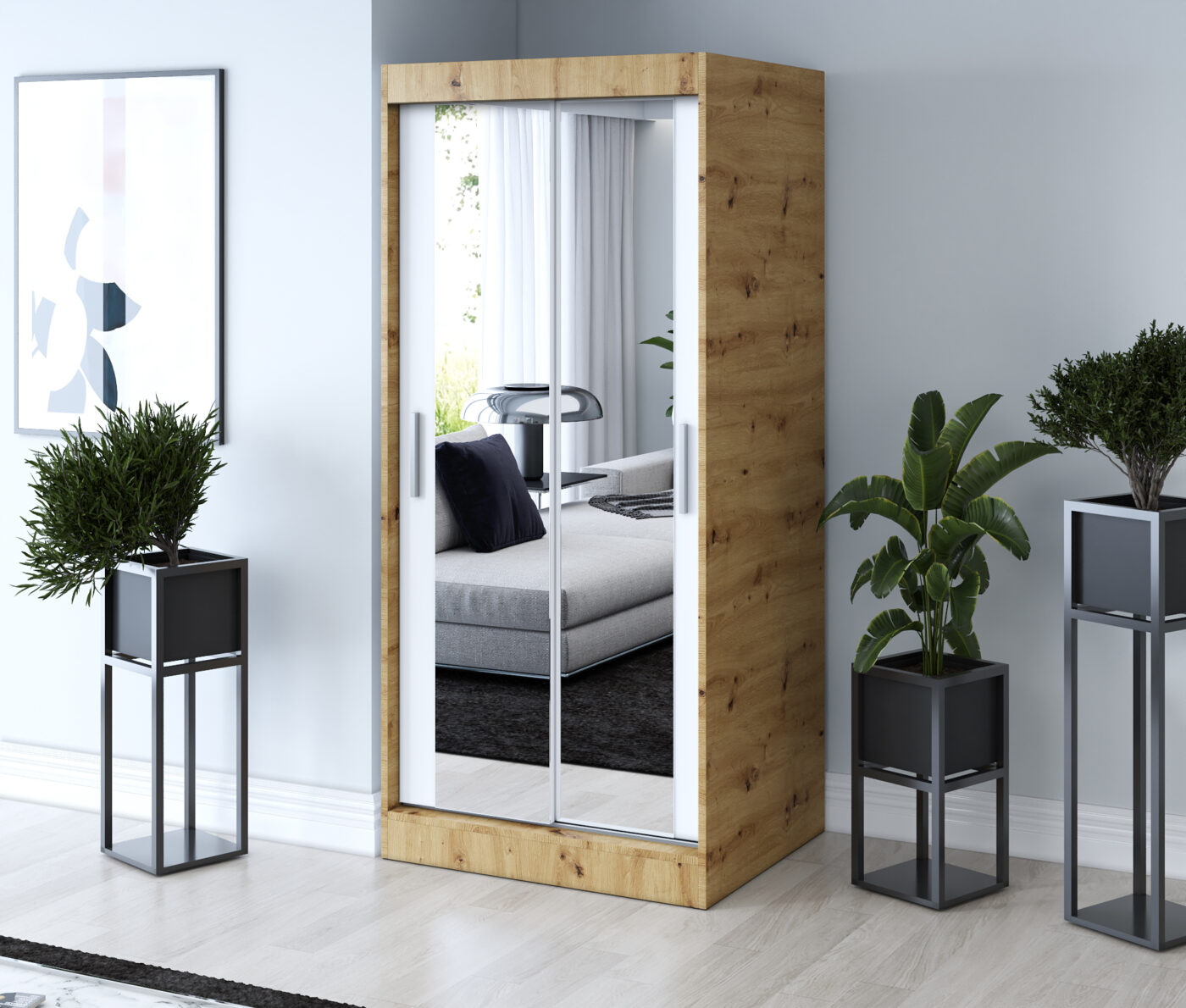 Szafa przesuwna 90×200 Karl, Dąb Artisan / Biały mat